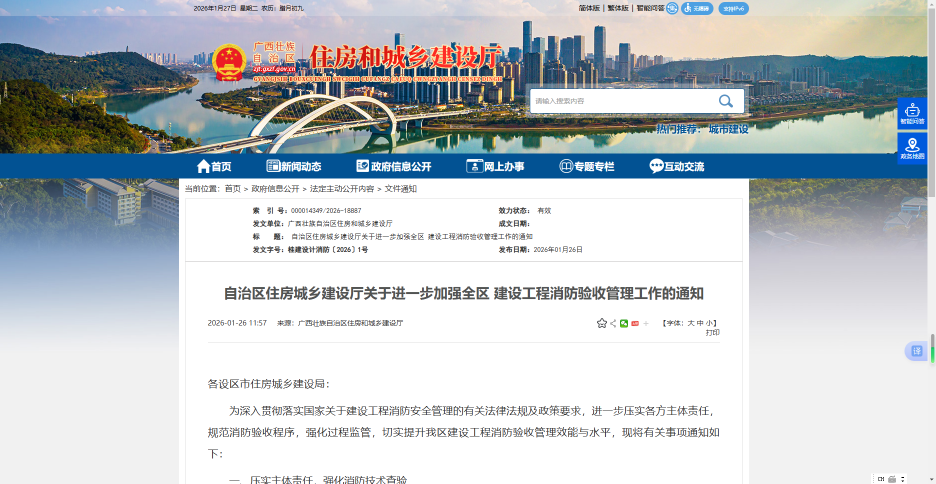 为深入贯彻落实国家关于建设工程消防安全管理的有关法律法规及政策要求,进一步压实各方主体责任,规范消防验收程序,强化过程监管,切实提升我区建设工程消防验收管理效能与水平,现将有关事项通知如下: