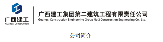 广西建工集团第二建筑工程有限责任公司成立于1965年10月,是国有控股的国家建筑工程施工总承包特级、建筑行业(建筑工程、人防工程)甲级设计资质企业。公司总资产约38亿元,净资产约8亿元,经营综合指标名列区内建筑企业前列。