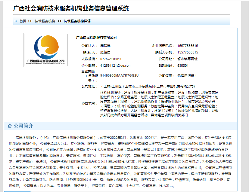 经营类型:建设工程质量检测,消防设计、消防查验、安装调试、咨询评估、消防设施设备维护保养