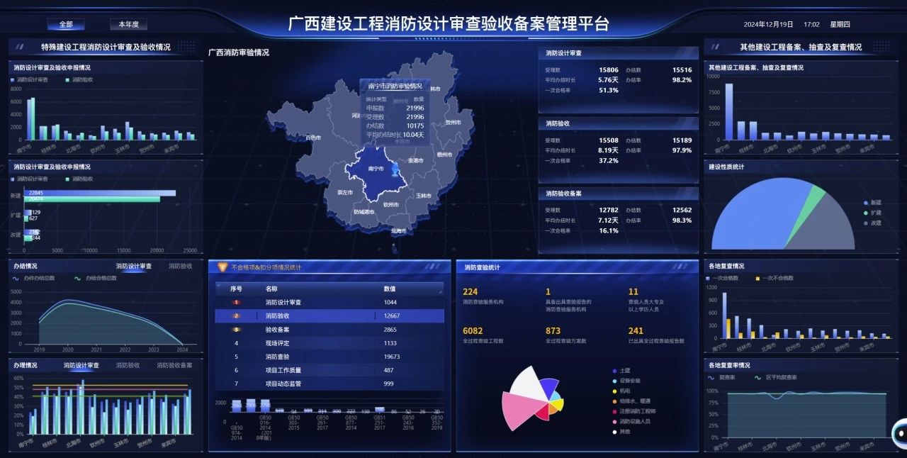 建设工程消防设计审查验收备案管理平台:该平台覆盖省(自治区)、市、县(市、区)三级,实现了消防设计审查、验收、竣工验收备案工作的无纸化申报和电子化审批,创新了消防审验工作模式。