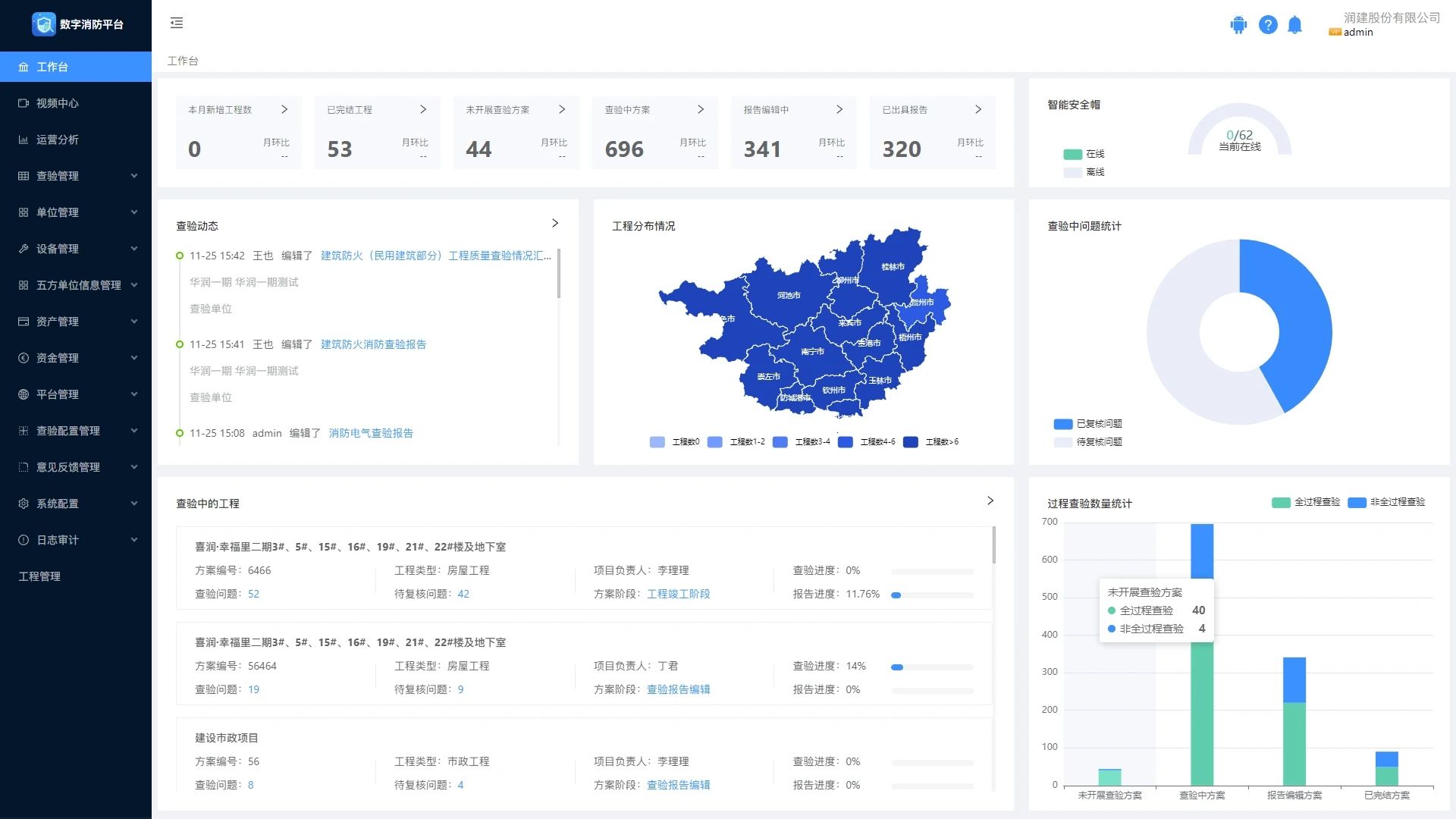 建设工程消防查验实操技术服务系统(查验通):通过“查验通”系统,协助开展建设工程消防查验工作,实现了查验全过程信息化、规范化管理,提高了消防验收的一次通过率。