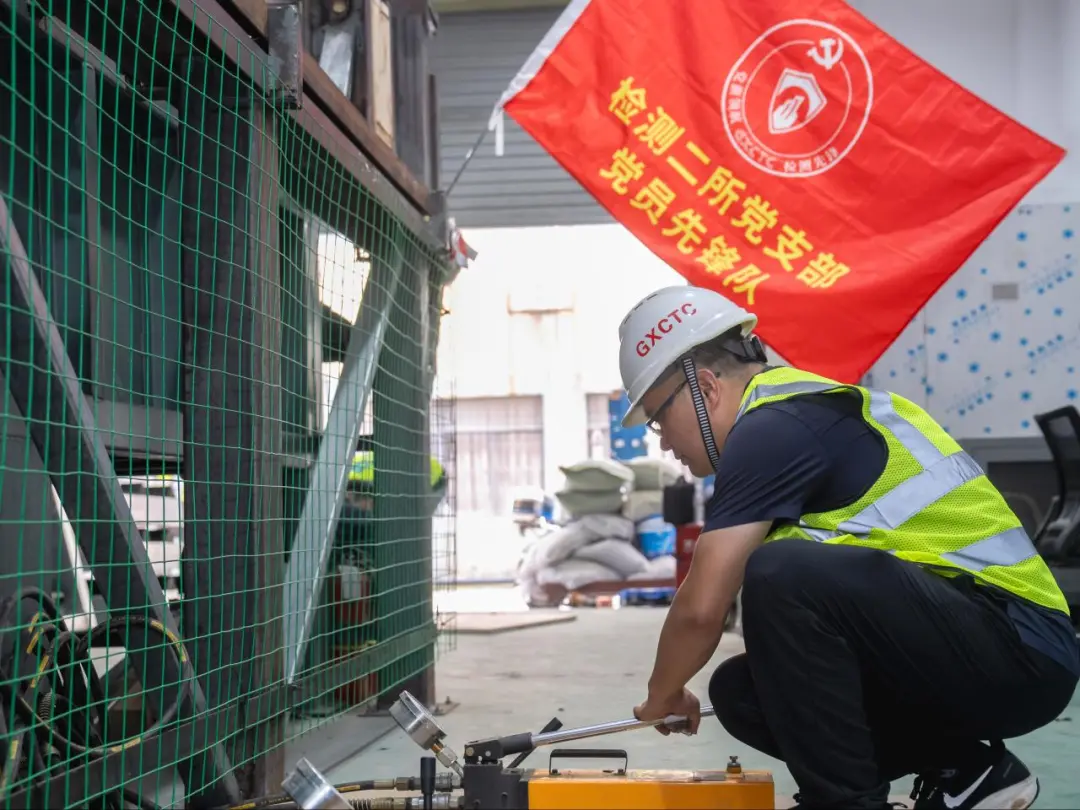 检测二所党支部深耕“党旗领航,检测先锋”党建品牌,全力服务西部陆海新通道(平陆)运河、南宁T3航站楼等战略工程。推行“三个一线”工作法(党旗插在一线、党员冲在一线、服务保障一线),组建T3航站楼、桥梁检测等5支党员先锋队,确保骨干力量下沉、保障重大项目到位。其中桥梁检测党员先锋队平均年龄30岁,党员占比41%,青年骨干达70%,博士硕士占比超40%,以高学历、强技术、敢攻坚著称,“十四五”期间高质量完成广西240余座桥梁检测任务;T3航站楼党员先锋队突破场地与技术双重限制,2025年高效搭建抗风揭试验室,完成广西首例金属屋面系统抗风揭试验,保障重大工程节点检测完成率100%。