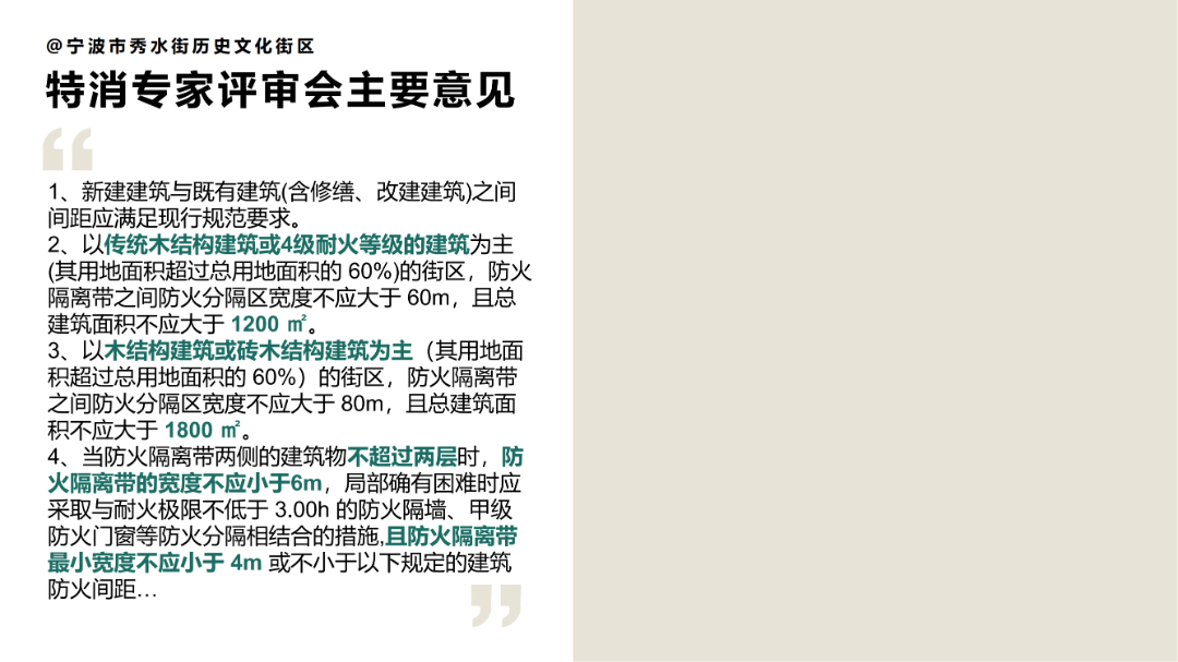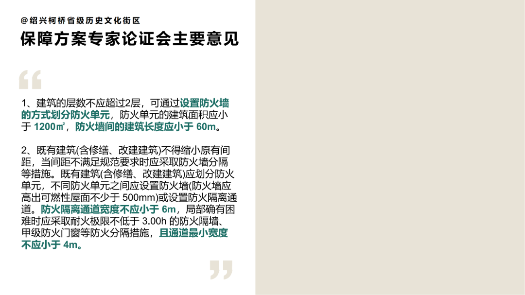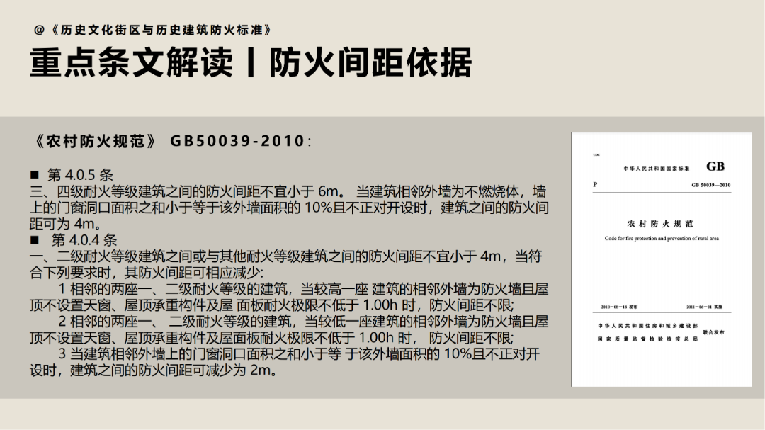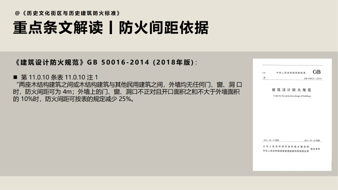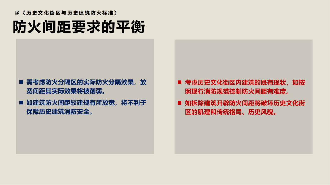 作题为《浙江省历史建筑与历史街区防火之实践》的报告,结合《威尼斯宪章》《建筑设计防火通规》的要求,本着尊重历史风貌和建筑空间、功能本原的精神,通过性能化分析等手段,采取对应的加强措施,提升消防安全性能,而不应机械地套用规范。
