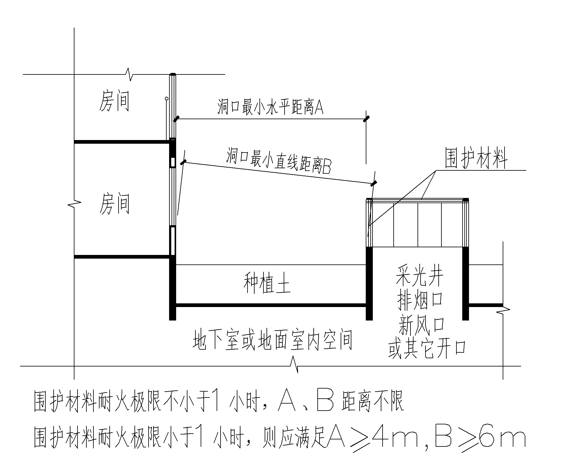 地下室设置的采光井,通风井等地下室开口与地面建筑的防火间距有何要求?