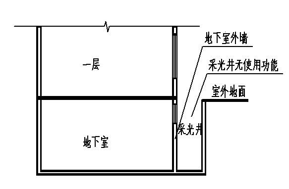 3. 与地下室内部完全分隔的,仅用于采光并且内部无使用功能的采光井不限距离。见图3。