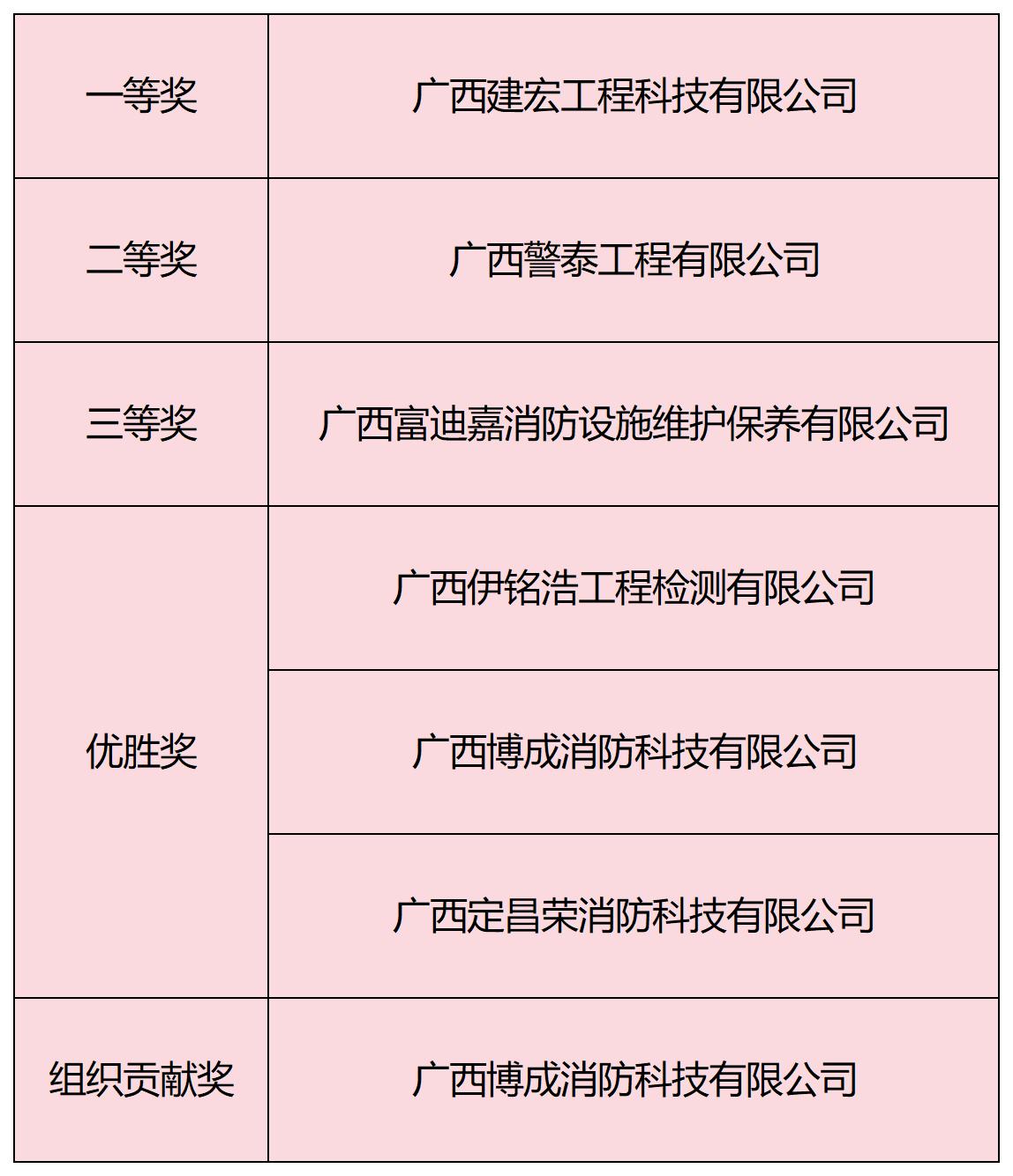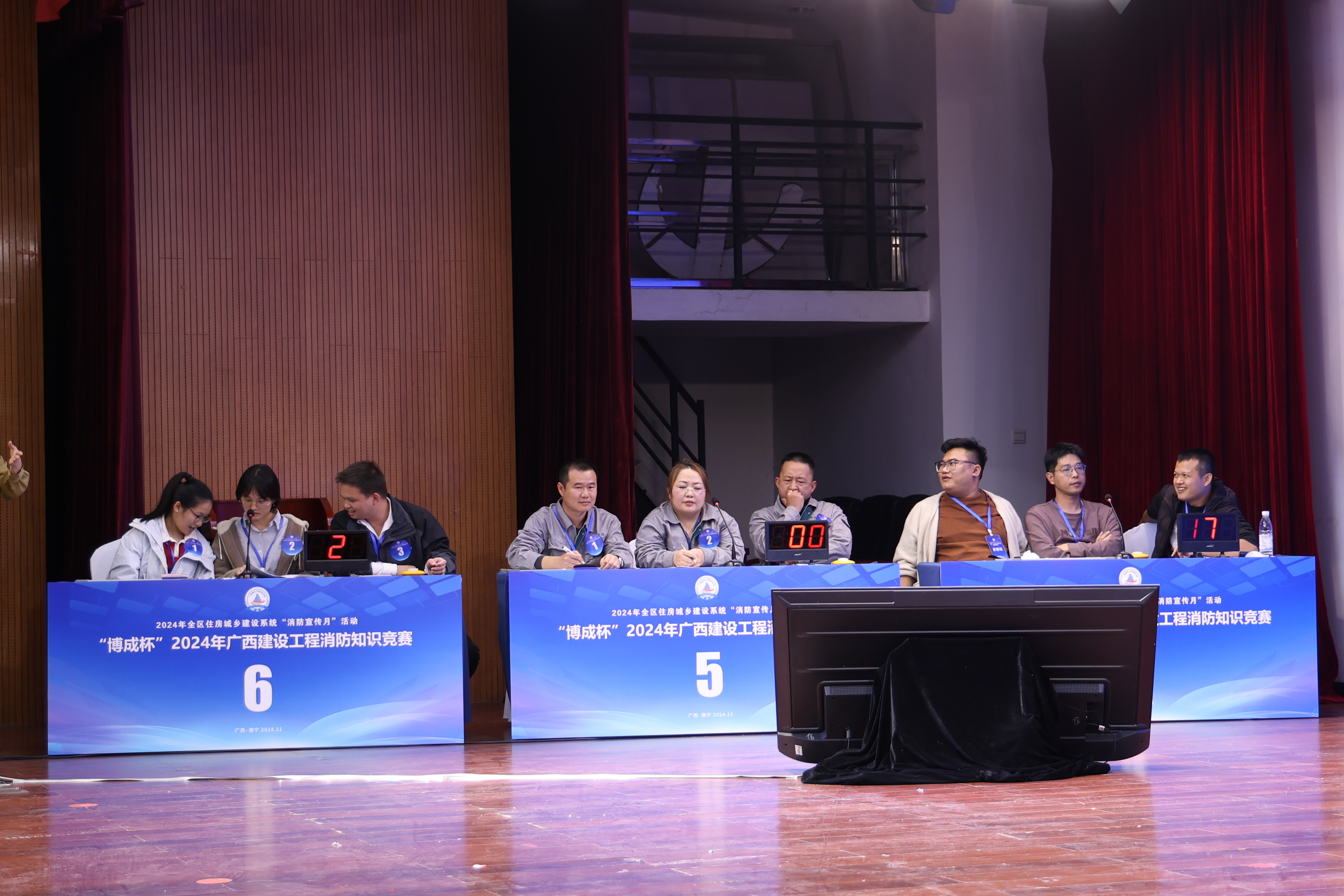 此次竞赛是2024年全区住房城乡建设系统“消防宣传月”系列活动之一,由广西建设工程消防协会主办,广西建设职业技术学院、广西博成消防技术有限公司承办,共有55家参赛队伍、165人报名参赛。经过初赛和复赛,6支队伍成功闯入决赛;决赛采取现场答题竞赛的形式,通过必答题、抢答题等环节进行比拼。竞赛内容主要包括建筑防火、火灾自动报警系统、消防给水及消火栓系统、自动喷淋系统、防排烟系统、应急照明系统、气体灭火系统等相关技术规范;着重考核选手在消防设计、施工和验收相关规范与质量标准,以及消防查验工作中常用、易错、容易忽视的知识点,旨在提升全区建设工程消防安全管理水平,提高社会各界特别是建设工程领域的从业人员消防安全意识,营造良好的消防安全文化氛围。