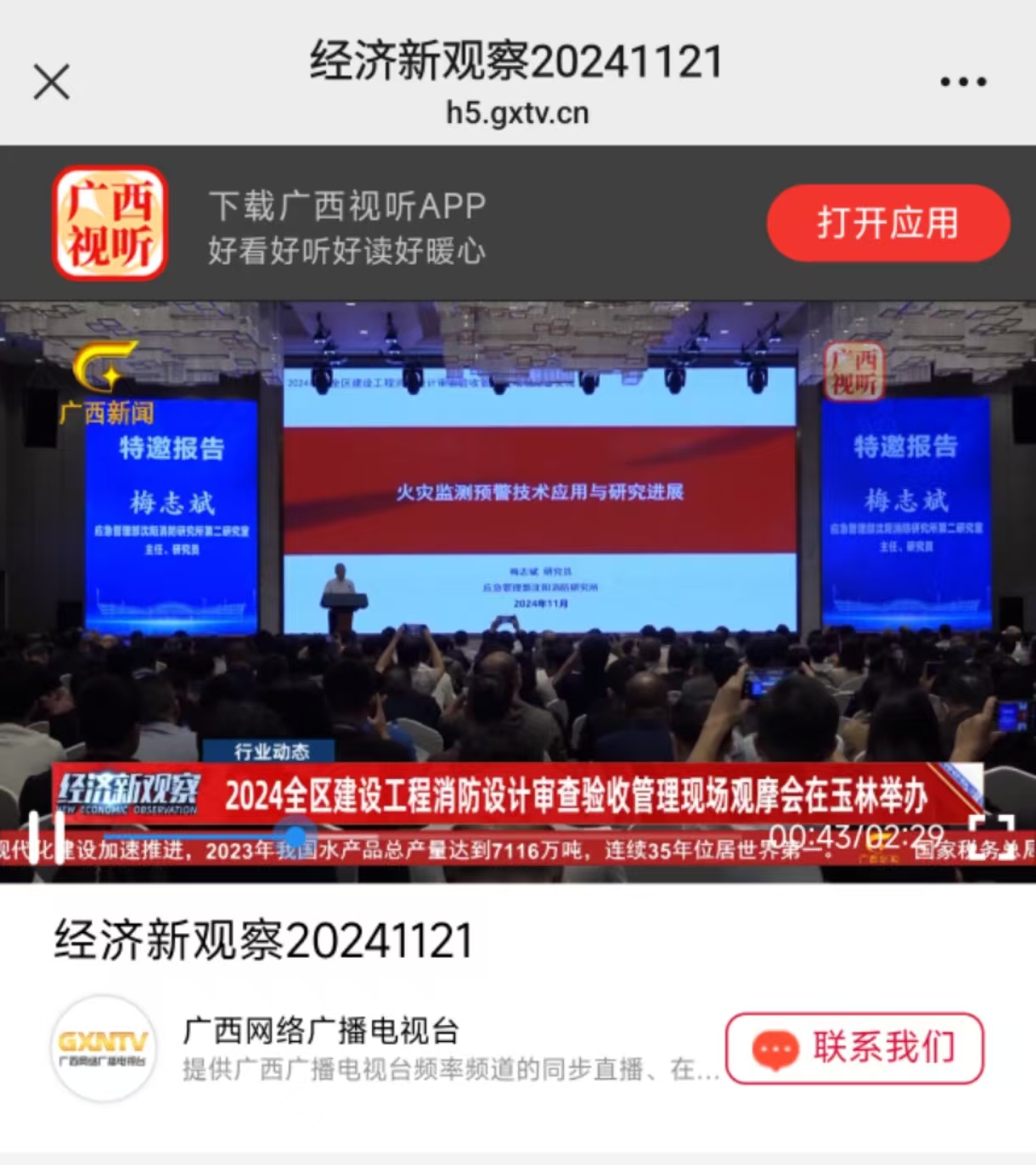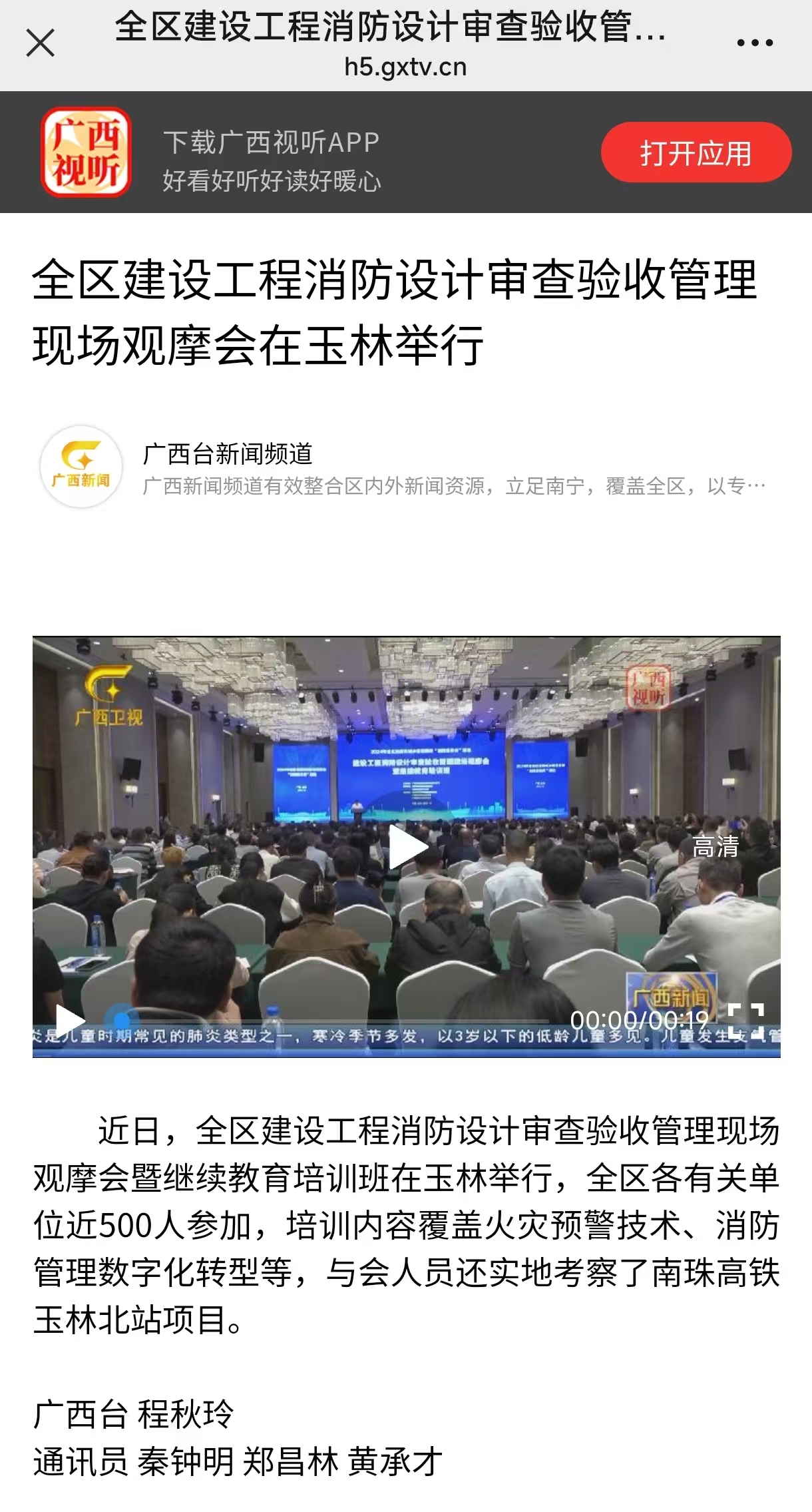 2. 广西电视台2024年11月21日播出《2024全区建设工程消防设计审查验收管理现场观摩会在玉林举办》新闻