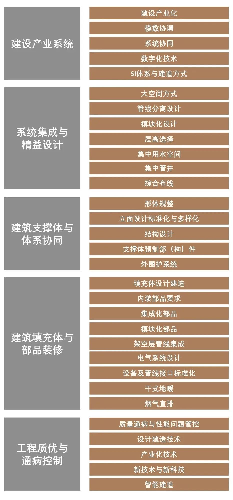 《设计指南》基于安全、舒适、绿色、智慧的“好房子”顶层设计方向,不仅对现有新时代住房建设相关标准进行补充完善,更是着眼未来,聚焦我国当前住房普遍存在的建筑寿命短、产业水平低、性能品质低、运维耗能高以及百姓感受度差等问题,旨在构建一套以建设产业化、建筑长寿化、品质优良化、绿色低碳化为核心的整体技术解决方案,涵盖新模式、新标准与新体系。