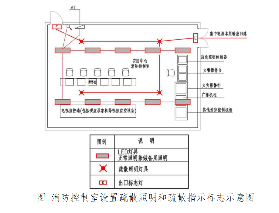 消防控制室、消防水泵房、配电房、发电机房等场所除设置备用照明外,还应增设疏散照明和疏散指示标志,见图3.2.8。
