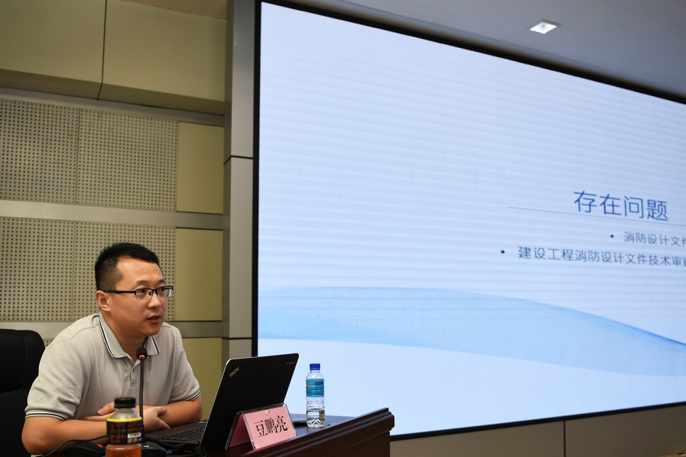接着,自治区住房和城乡建设厅勘察设计处处长陈勇前从施工图审查制度说起,结合近年来施工图设计文件审查的情况,对核查过程中存在的问题进行了深入分析,进一步对建设工程消防设计文件审查工作质量提出了要求。他指出全区施工图审查机构应该从问题中吸取教训,开展反思,落实整改;进一步加强审查人员规范性文件的培训学习,提高审查能力,提升施工图审查质量,建立和完善施工图审查诚信管理体系。
