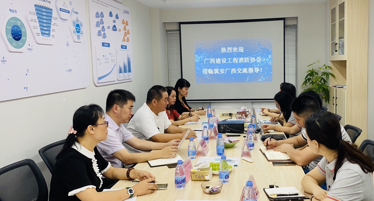 9月28日,为促进和加强协会对会员单位的服务,做好行业宣传工作,广西建设工程消防协会会长唐国荣、副会长兼秘书长汪烈一行6人到广西筑安科技有限公司调研走访。