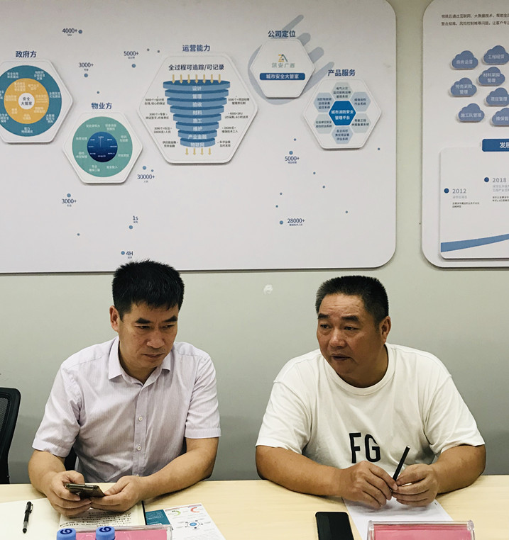 会上,双方就疫情常态化发展时期所遇到的重点与难点问题展开交流,蒙董事长介绍了广西筑安科技有限公司的发展战略和经营理念及公司的经营情况,公司经营范围主要从事工程运营板块、工程产业互联网服务平台、城市消防大安全产业互联网服务平台、新兴业务四大板块全生态服务,负责以广西区域为中心辐射大西南地区的运营,为工程产业及城市消防安全提供整体解决方案,为新生态圈的合作伙伴进行全面赋能。