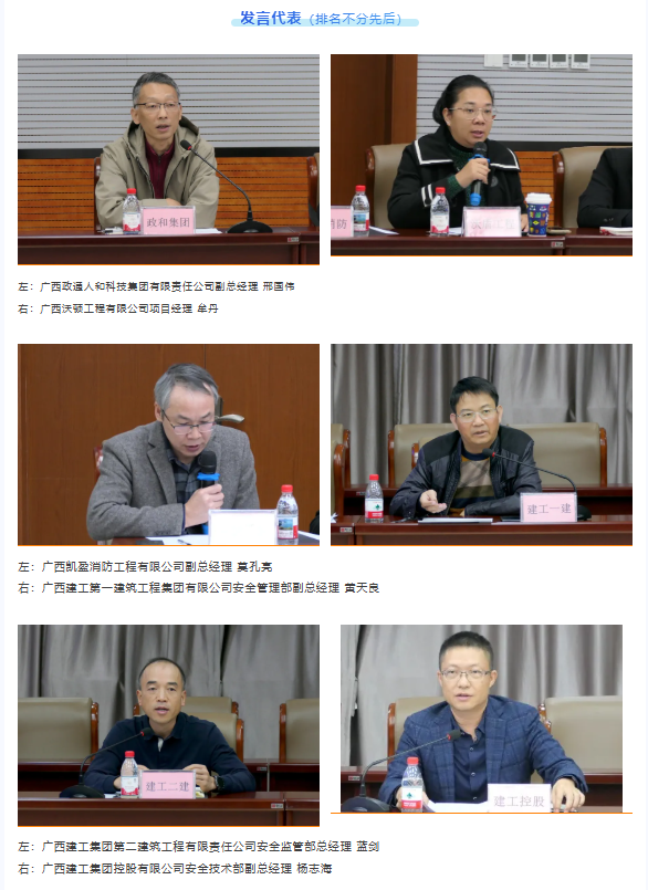 在交流研讨环节,与会代表结合企业施工管理实践,围绕施工材料阻燃性能全流程管控、动火作业审批及现场监护、临时消防设施配置与维护、从业人员消防安全培训、应急救援体系建设等关键环节展开热烈讨论。大家一致认为,要重视建设工程施工领域可能存在的薄弱环节,严防临时消防设施配备不足、易燃材料管理不够规范、动火作业监护不够到位等安全隐患,需以香港火灾事故为镜,及时排查、改进存在的问题。同时,各单位积极分享消防安全管理先进经验和做法,为行业互学互鉴提供了有益参考。