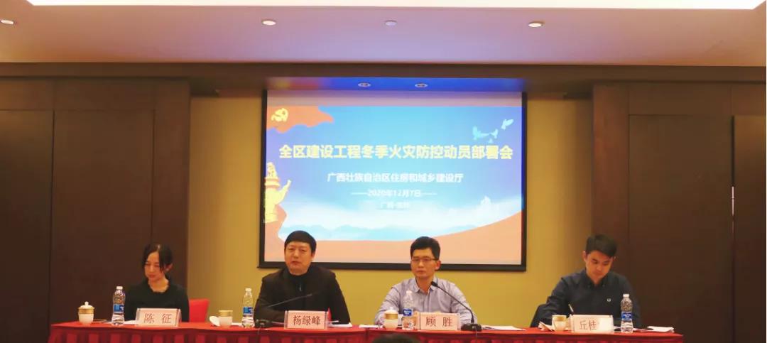2020年12月7日,自治区住房城乡建设厅在广西桂林市召开了全区建设工程冬季火灾防控动员部署会,自治区住房城乡建设厅党组成员、副厅长杨绿峰出席会议并讲话。会议通报了全区上一阶段的火灾形势,并为全力做好冬春火灾形势防控作了下一步的安排部署。
