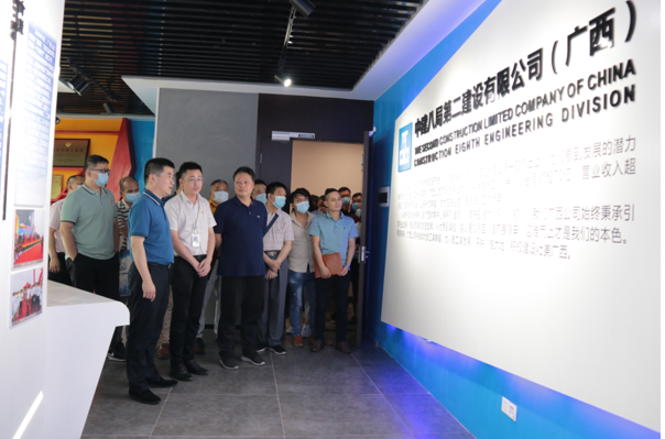 中建八局第二建设有限公司领导带领协会会员代表参观公司展示厅,介绍公司发展历程和获得荣誉。
