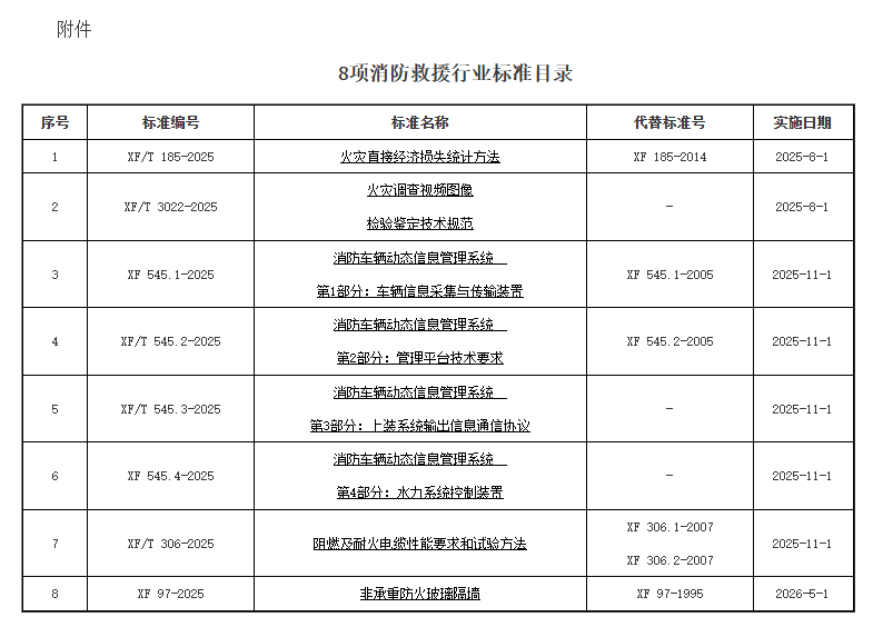 国家消防救援局公告(2025年第1号):国家消防救援局批准《火灾直接经济损失统计方法》等8项消防救援行业标准